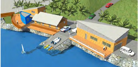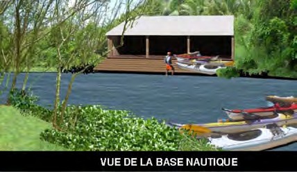 La base nautique de Petit-Bourg a pour vocation d’accueillir les pratiquants d’avirons qu’ils soient en clubs, scolaires ou professionnels. Elle sera implantée sur le site actuel de la pointe à Bacchus. L’accès ainsi que le talus seront repris dans le cadre de ce projet. Vu les contraintes topographiques et l’étroitesse du terrain, le projet se développe tout en linéaire avec : un hangar technique pour la réparation des avirons, une salle de musculation, une zone administrative et des vestiaires – sanitaires adaptés et accessibles à tous. Afin de répondre à l’accueil des handisports, cette base sera aménagée d’une rampe de mise à l’eau.