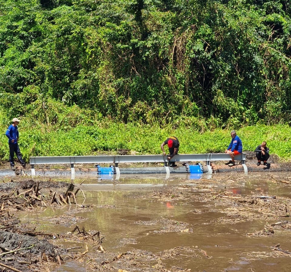 La réparation de la canalisation d’alimentation de Belle-Eau Cadeau réalisée sur un terrain marécageux de Goyave situé entre Moreau et Fort l’île s’est révélée une opération délicate, difficile, exigeante. Il a fallu d’abord localiser la panne. Ce sont les habitants en bordure du site qui ont donné les informations. Ils ont signalé la présence anormale d’une eau claire qui imbibait la mangrove.