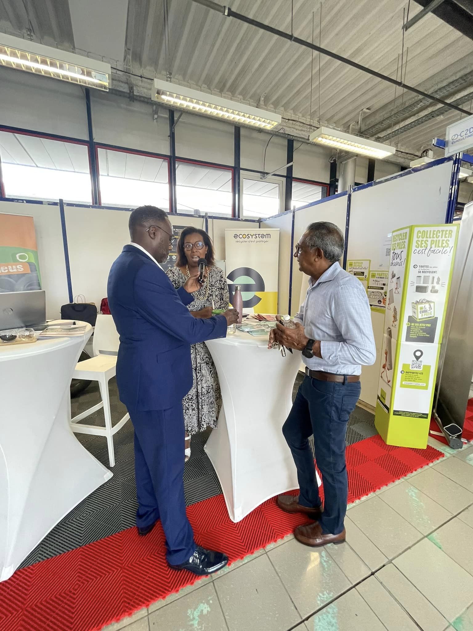 Jeudi 19 octobre, Camille Vaïtilingon (à droite), chef d'entreprise du BTP et président de la commission développement durable de la CCI-IG ouvre le salon Les rencontres pros durables au WTC à Jarry