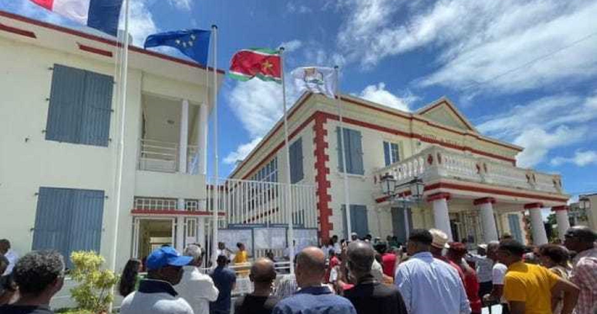 Levée de drapeau à Port-Louis le 27 mai 2023 avec l'officialisation du drapeau UPLG comme emblème régional