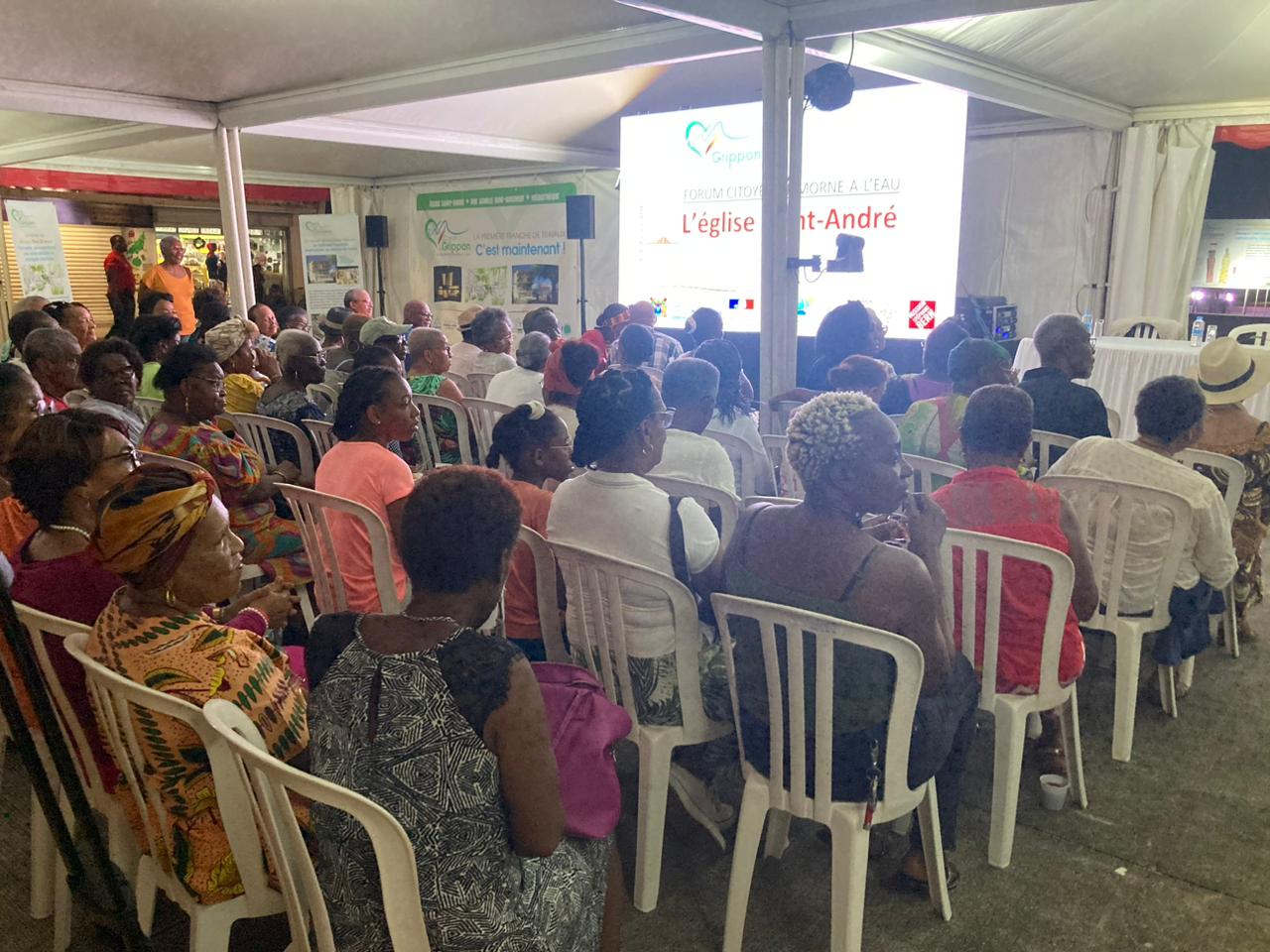 Placé sous l’égide du programme de redynamisation Cœur de Grippon, le forum citoyen dédié à la restauration de l’église réunit la foule vendredi 17 novembre 2023 à Morne-à-l’Eau, Guadeloupe. Photo : Facebook Ville de Morne à l'eau.
