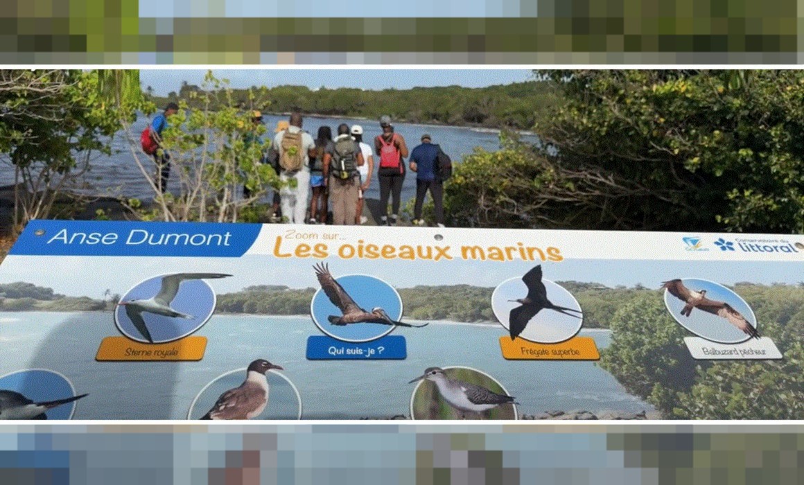 Un panneau pédagogique du sentier « Gozyé ékolo » à Saint-Félix au Gosier qui permet d'identifier et de comprendre le rôle écologique des oiseaux locaux. Photo : capture écran Canal 10