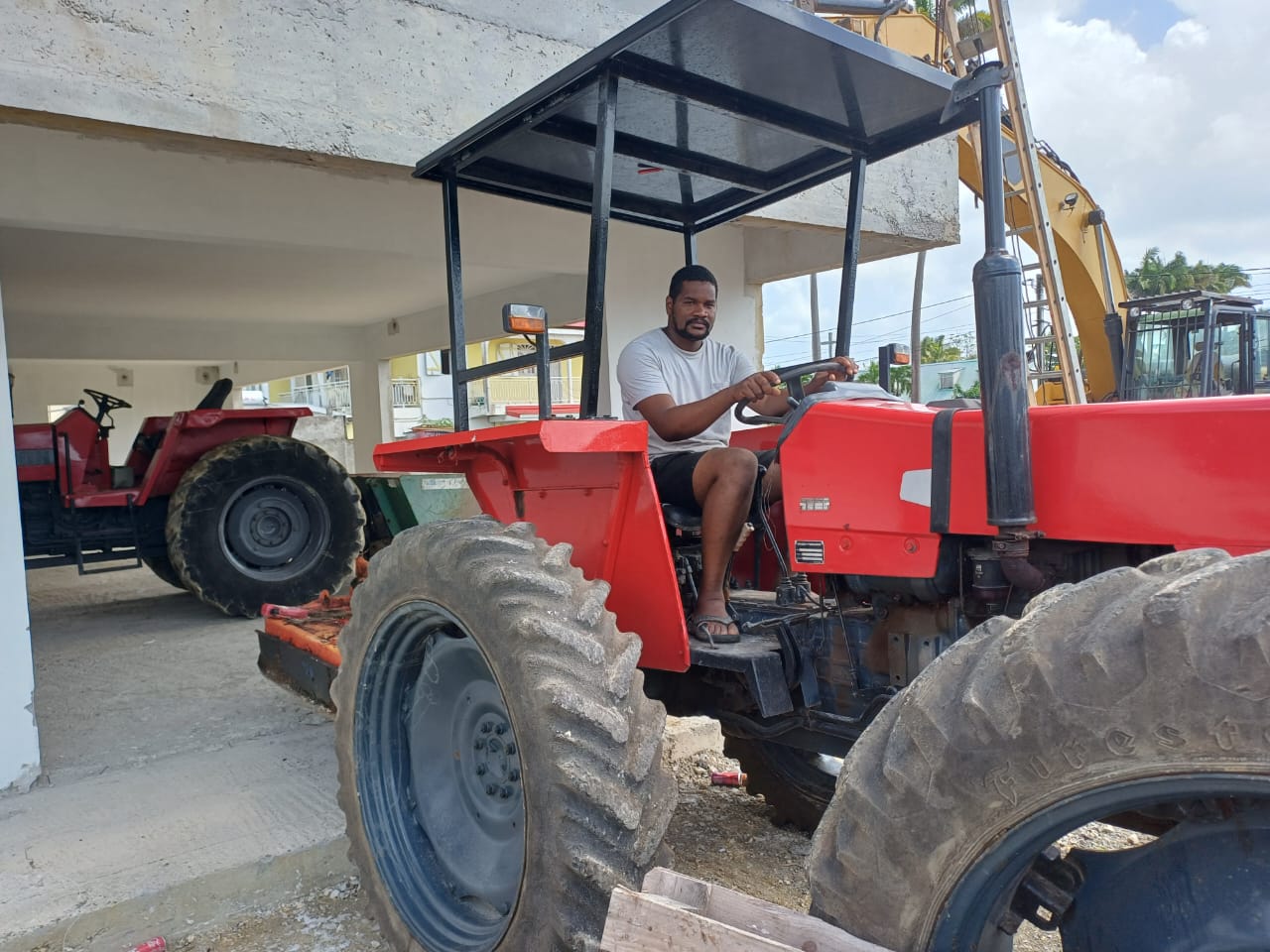 Cyrille Moutoussamy, jeune agriculteur, sur son tracteur au Moule, le 25 octobre 2024. Photo : Pierre-Édouard Picord / Le Courrier de Guadeloupe