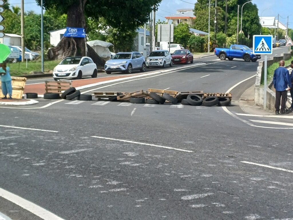 Le 14 octobre le collectif LCDM bloque le rond-point de Jabrun à Baie-Mahault. Photo : PEP / Le Courrier de Guadeloupe