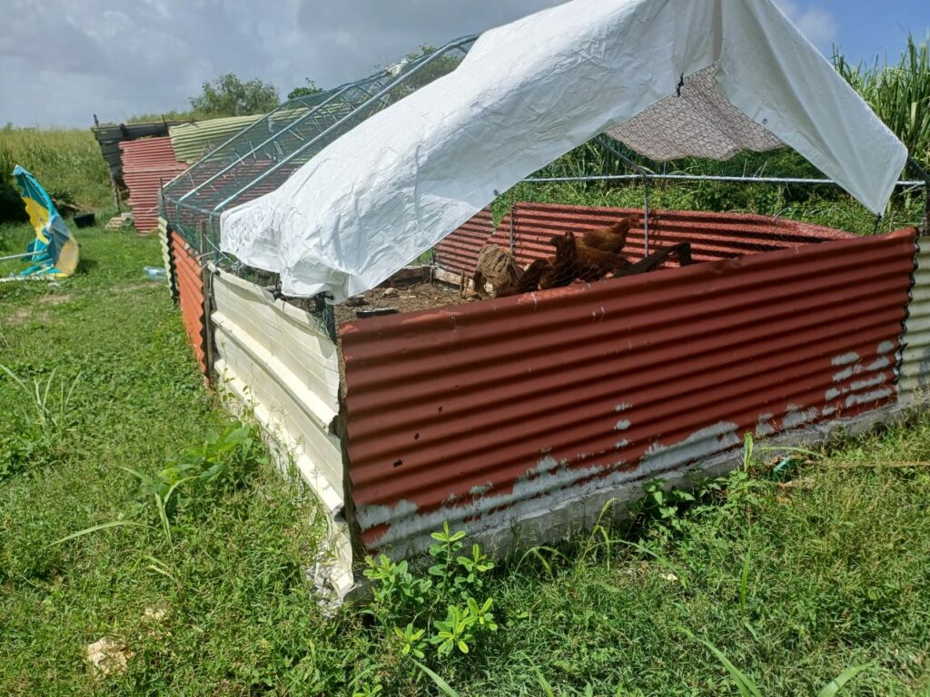 Autrement dit, Cyrille Moutoussamy peut mener à bien son projet puisqu’il dispose d’une superficie suffisante. En gros il n’a plus besoin de la parcelle AE 191. Or la libération des terres occupées par les Machecler est une contre-vérité. Le Courrier de Guadeloupe s’est rendu sur la parcelle AE 553 au Moule. Celle-ci est encore occupée. Des bovins et poules sont présents. La terre est labourée et des cultures sont en place. Pelles, houes et fourchettes sont entreposées dans un cabanon.